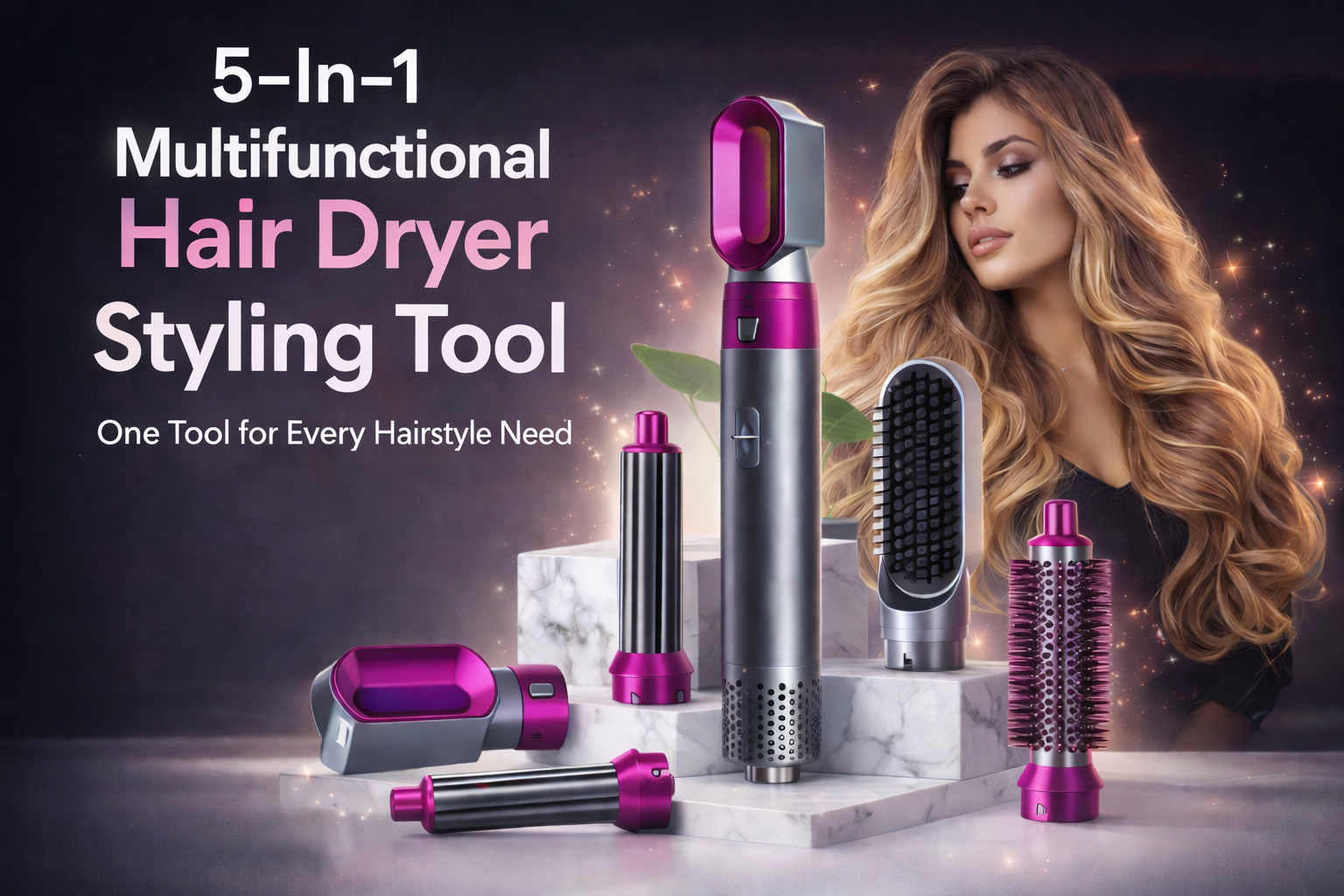 5 in 1 Multifunctional Hair Dryer Styling Tool, Detachable 5-in-1 Multi-Head Hot Air Comb, The Negative Ion Automatic Suction Hair Curler