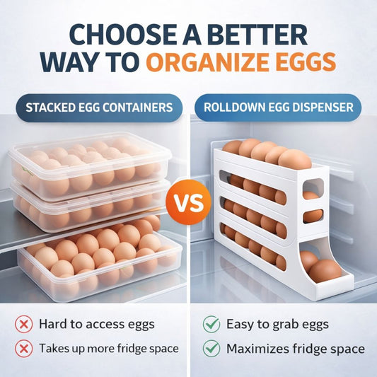 Automatic Rolling Egg Dispenser for Refrigerator | 4-Tier Space Saving Egg Holder (Holds up to 30 Eggs)